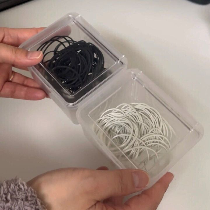 2つに分かれているタイプのこれは、2色の輪ゴムを分けて収納するのにピッタリ!