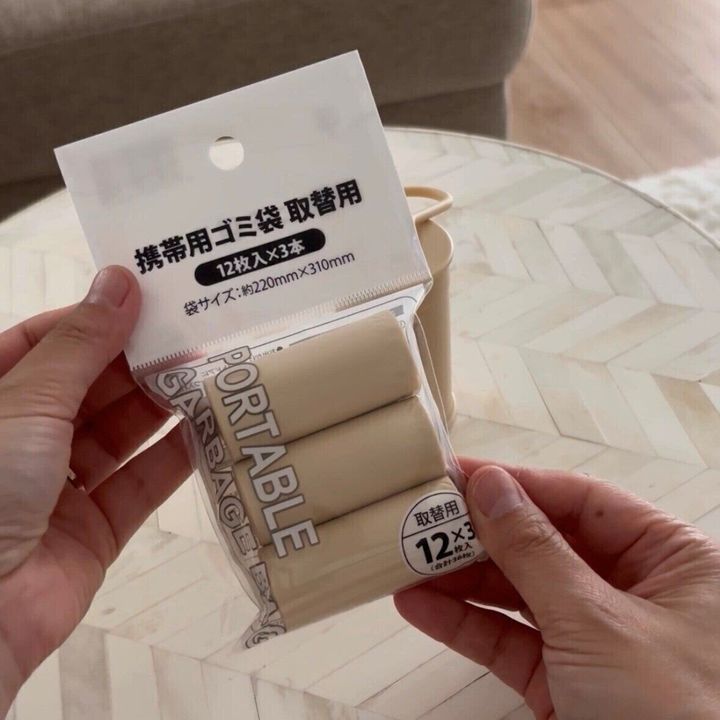 ケースも袋もベージュで、見た目の感じも私好みの携帯用ごみ袋。