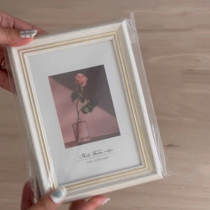ゴールドのラインがワンポイントになっていて、とってもおしゃれなフォトフレームです。
