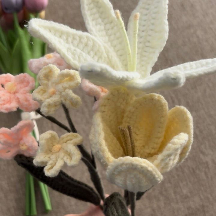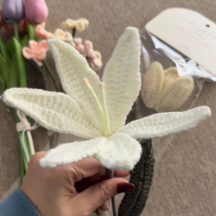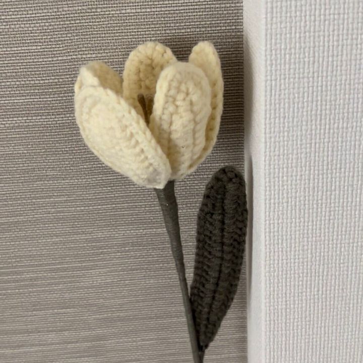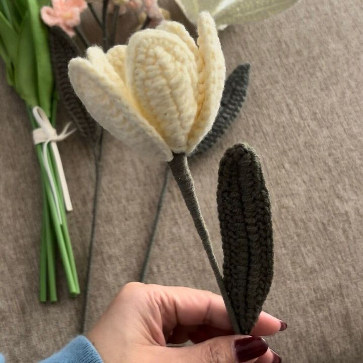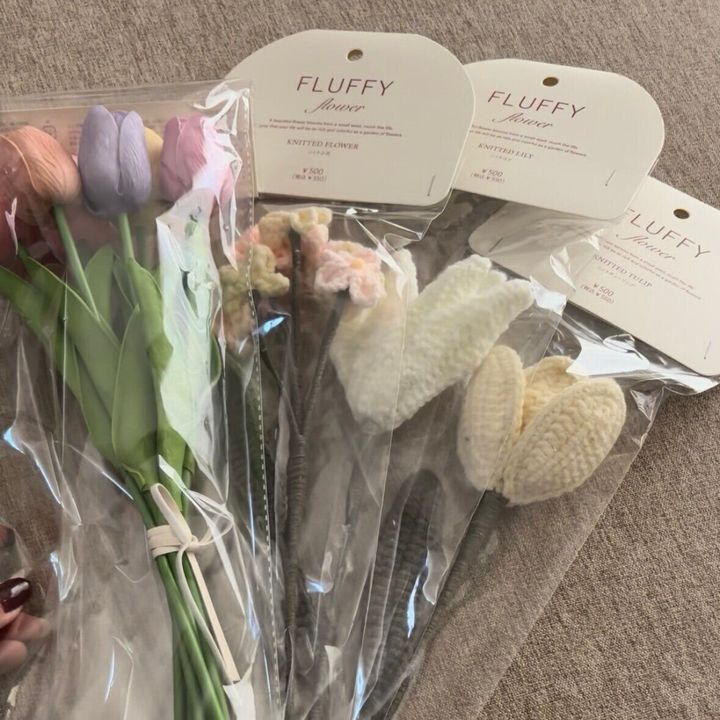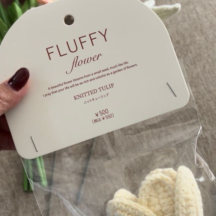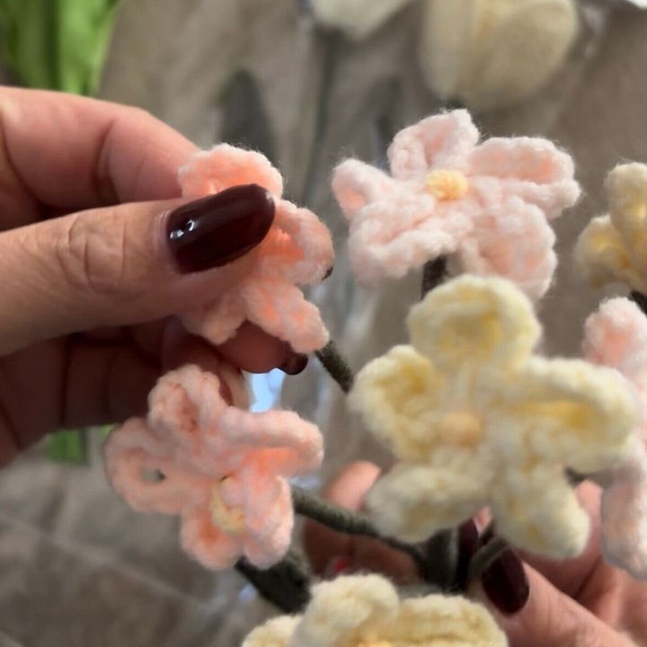 ニットのお花は手で開いたり向きを変えたり自分好みにできますよ!