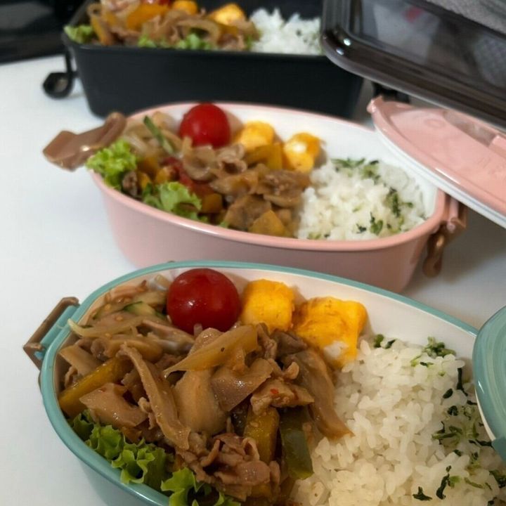 今回は次女と三女用のお弁当箱なので、次女はミント、三女はピンクにしました。