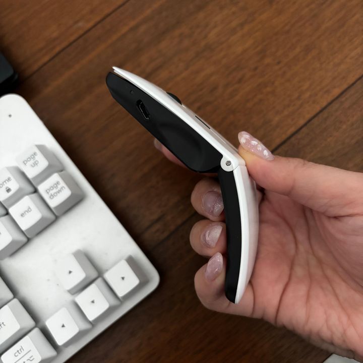 見てください!このマウス折れ曲がっているところをフラットにすることが出来るんです!