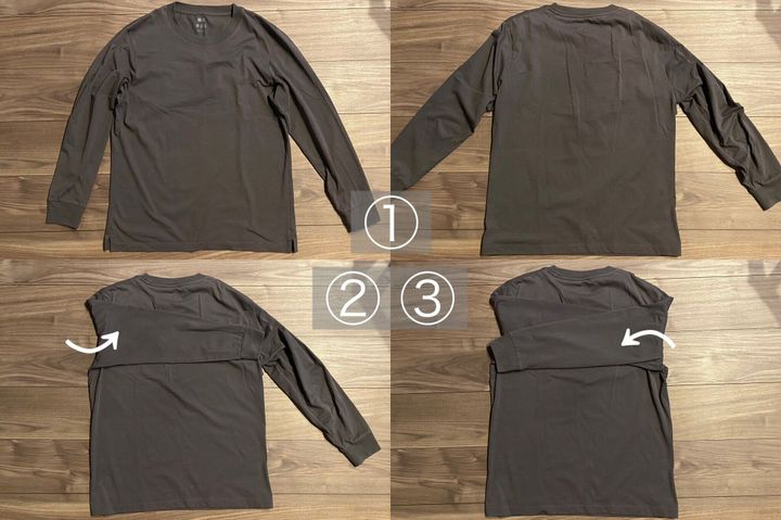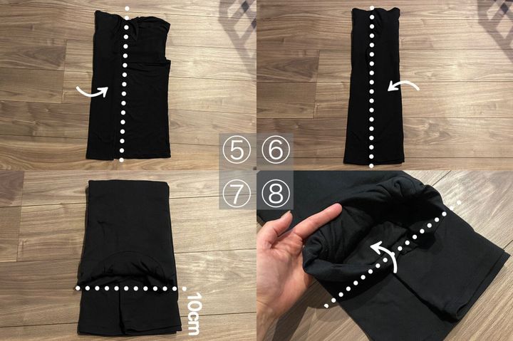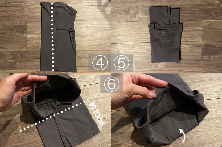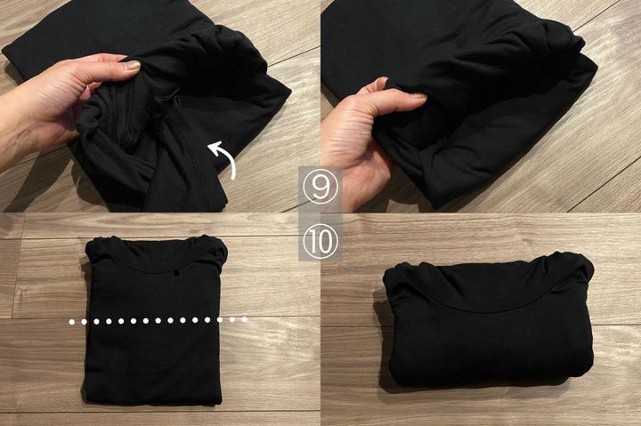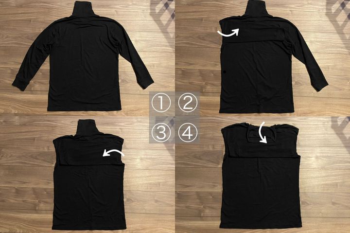4.ネックがある場合は首元を折ります。(袖と前後してもかまいません。)