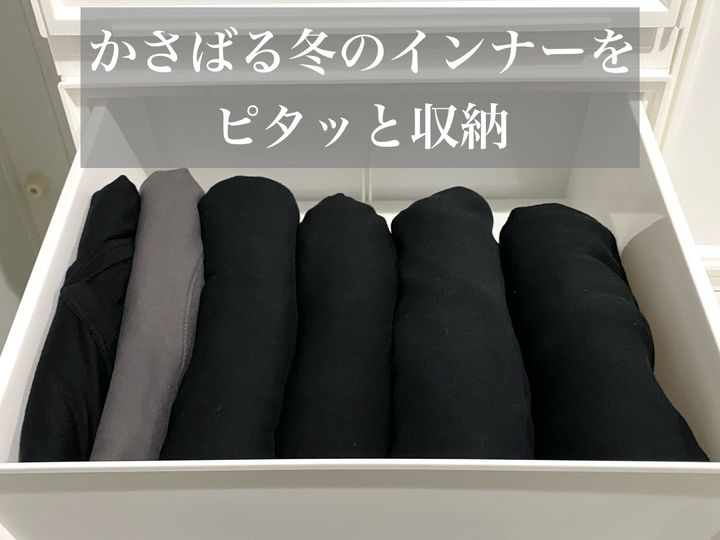 冬のインナーはハイネックだったり、少し厚めだったり薄めだったり様々で、ごちゃつきやすいケースの中にうんざりしていましたが、この方法だとピタッと収納できるのでオススメです!