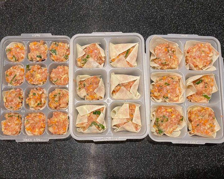 1番手間がかかる成形が詰めるだけなので、本当に手軽に大量生産できます。離乳食フリージングがあるご家庭はぜひオススメですし、ない場合は耐熱皿にそのままタネを敷いて、その上に細切りにしたワンタンの皮を敷くと、イカ焼売のようなビジュアルでもっと簡単にできますよ!