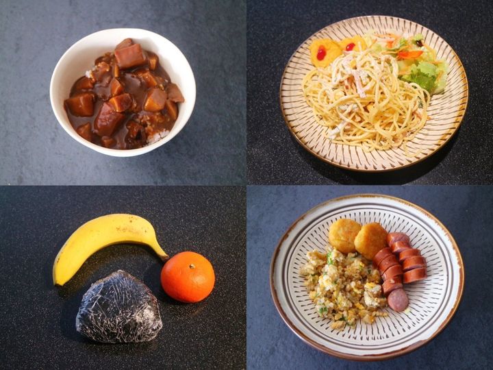 備蓄の期限が切れたレトルトカレーに、娘の残した炒飯。目についたバナナとみかん。