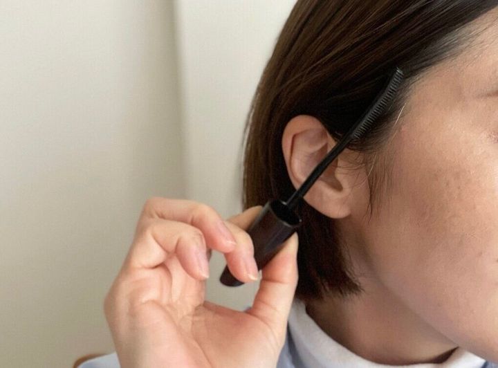 ブラシをササッと動かして、気になる生え際に塗り塗り。