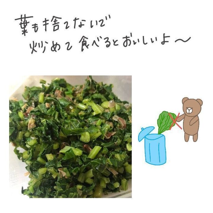 カブの葉っぱは購入後に捨てがちな部分ですが、実は白い部分よりも栄養は豊富に含まれております。特にカルシウムやビタミン類が多く含まれているため捨てずに食べましょう。