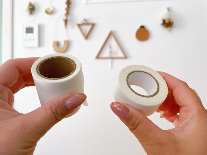 業務用のような本格的なマスキングテープだと粘着力が強すぎて、剥がすときに残ってしまうことがあるので100均のものが扱いやすいかと思います。