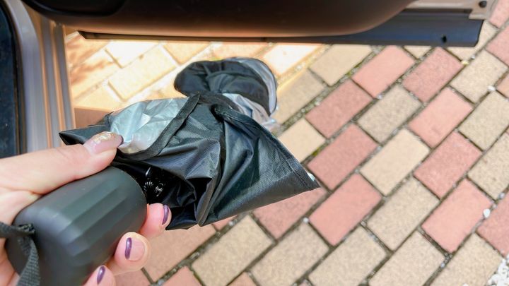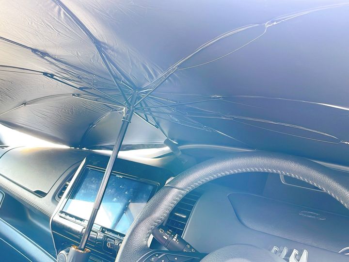 最近では100均やスリーコインズでも販売されている傘タイプのサンシェード。車をお使いの皆さんにぜひともオススメです。