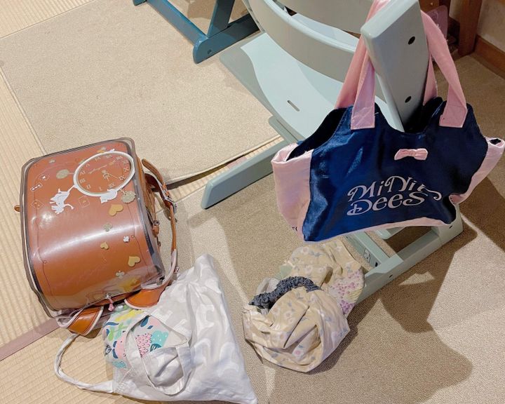 色んなところ(椅子には大量でした)へ手提げを掛けていた娘。