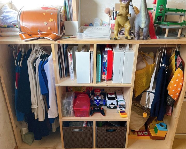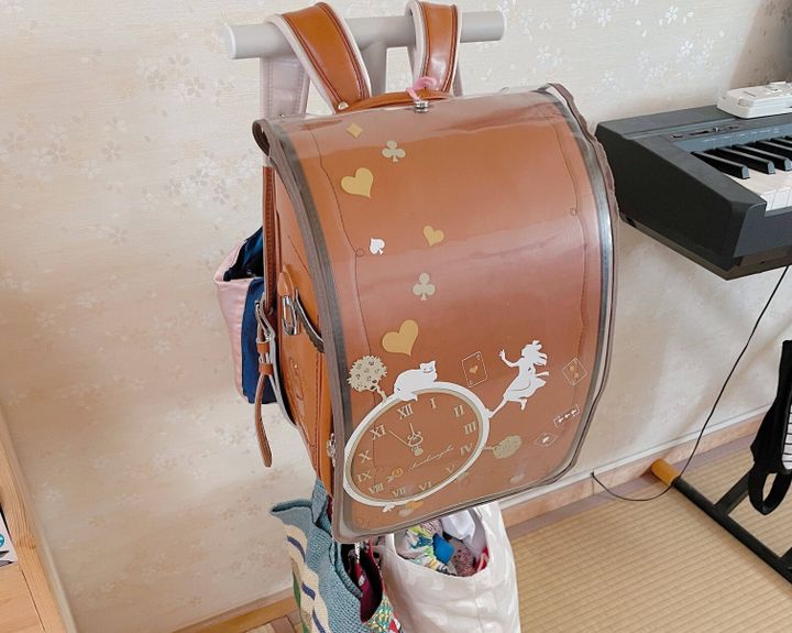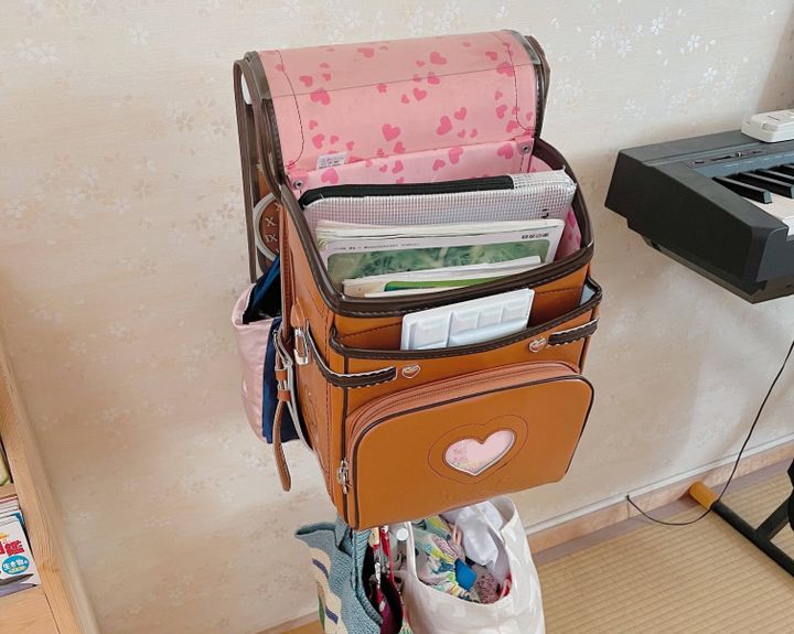 夫がDIYで作った棚は、ランドセルを置けるようになっていました。