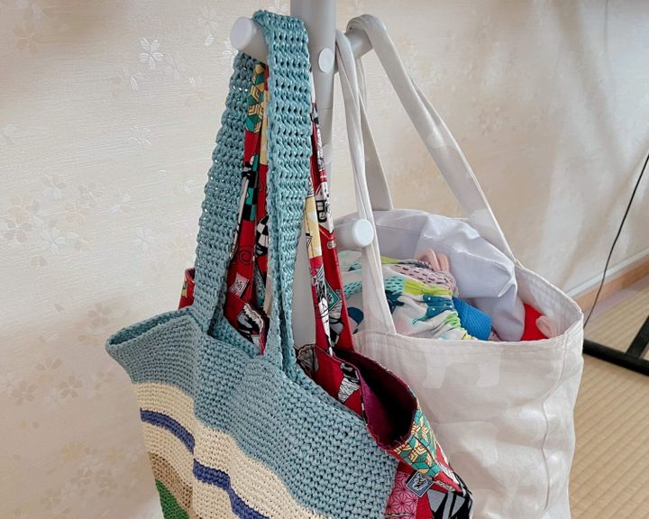 コンパクトな袋に休日使うバッグなどをまとめて入れて掛けることで少しでもスッキリな印象に。