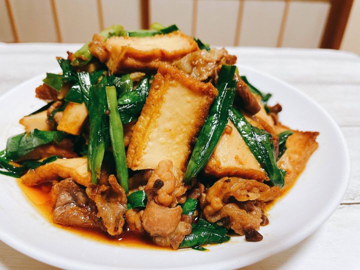 1.厚揚げは1cmくらいの厚さに、ニラは3cmくらいに、豚肉は食べやすい大きさにカットします。