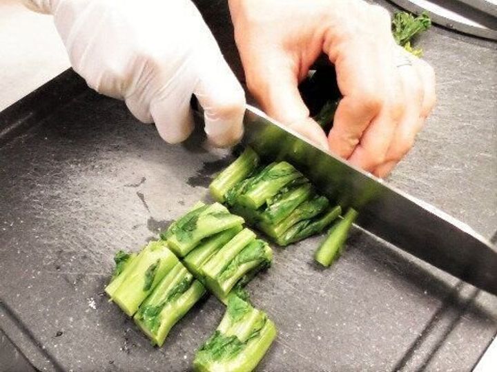 [3].[2]の水気を絞った菜の花を2~3cmの食べやすい長さに切る。
