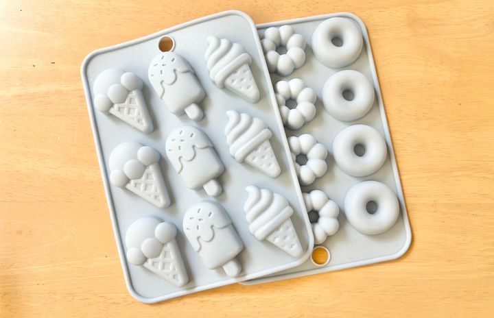 容器はシリコン製の可愛い型が100均でも売っていて、写真の型はダイソーで購入しました。型に入れるのが面倒なら、タッパーに入れてグミを固めてから子どもと一緒に型抜きするのもおすすめです。