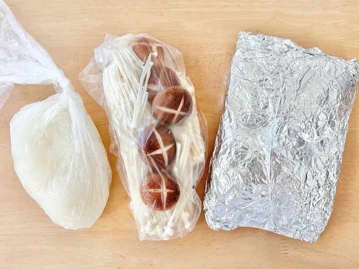 わが家では汚れをとって一口サイズにしたきのこをアイラップでくるりと巻いてそのまま冷凍保存しています。