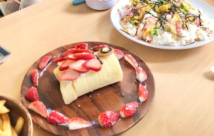 例えば、子どもの日には、こいのぼりケーキにちらし寿司、クリスマスなら骨つきチキンとサーモンのカルパッチョなど決めています。