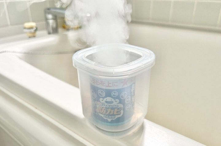 夜寝る前にお風呂場にセットして、起床後、朝一番に浴室を30分以上換気するだけ。あくまでカビ予防なので、今あるカビを落とすことはできませんが、これならバタバタと忙しい日々でも簡単にカビ対策ができると、重宝しています。