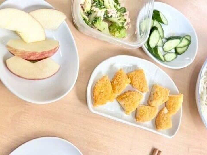 基本的には子どもに「うどん・そうめん・そばならどれ?」と聞くだけ。あとは、きゅうりやレタスなどパッと出せる野菜や果物に、タンパク質として、肉や魚を焼くだけ、卵焼きや冷凍の唐揚げ、納豆、ウィンナーなど特に考えなくても出せるメニューを並べるだけでよしとしています。