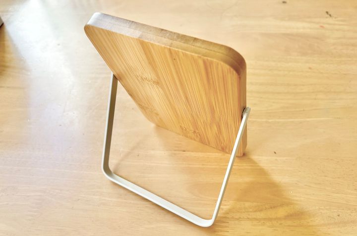 ダイソーで見つけた「竹製ミラースタンド」は、竹の味わいが上品で高見えするシンプルなデザイン。
