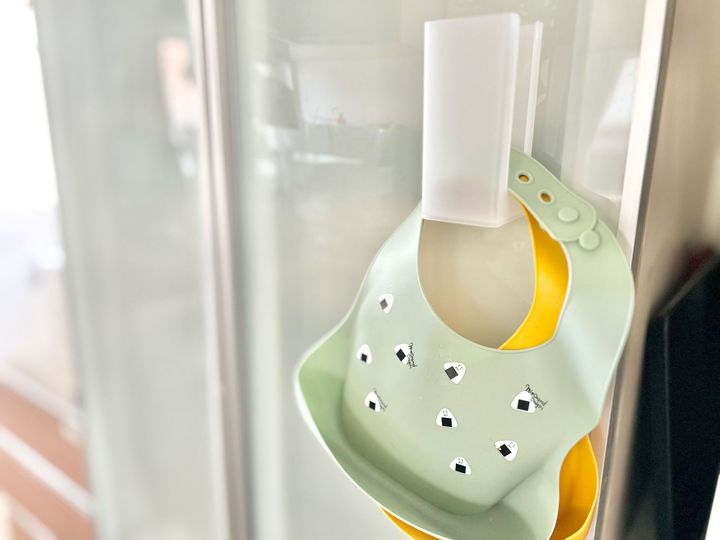 フックにかけるには大きすぎ、引き出しにしまうと引っかかる……。住所不定でずっとモヤっとしていた子どもの「お食事エプロン」。