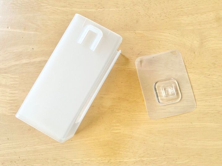 ガラスやタイルなど、完全に凹凸がない壁に取り付けることが前提になります。わが家の場合は、食器棚のガラス扉に貼り付けて使っていますが、面がツルツルな冷蔵庫にも取り付けできました。