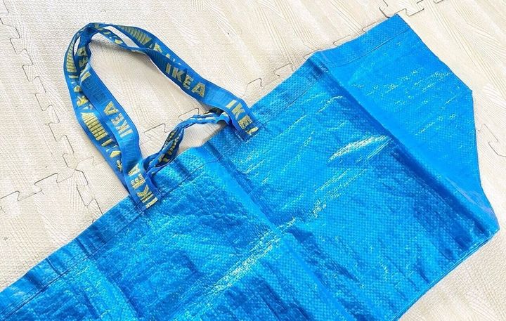 わが家で愛用しているのはIKEAのショッピングバッグです。大きいので、お昼寝布団のセットも入りますし、肩がけしやすい紐がついているので両手が空いて便利です。