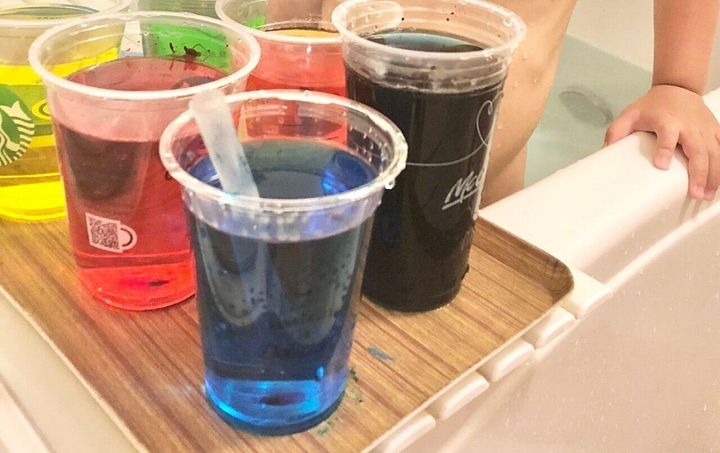 いつもと違う時間帯のお風呂は、子どもに断られることもありますが、食紅で色水を作ったり、100円ショップで購入可能なバスボールやお風呂クレヨンなどのアイテムを使うと気分が変わることがあります。
