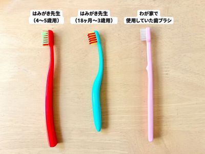 「はみがき先生」の歯ブラシが良かったのはまず「持ち手」。年齢に応じた違いがあります。