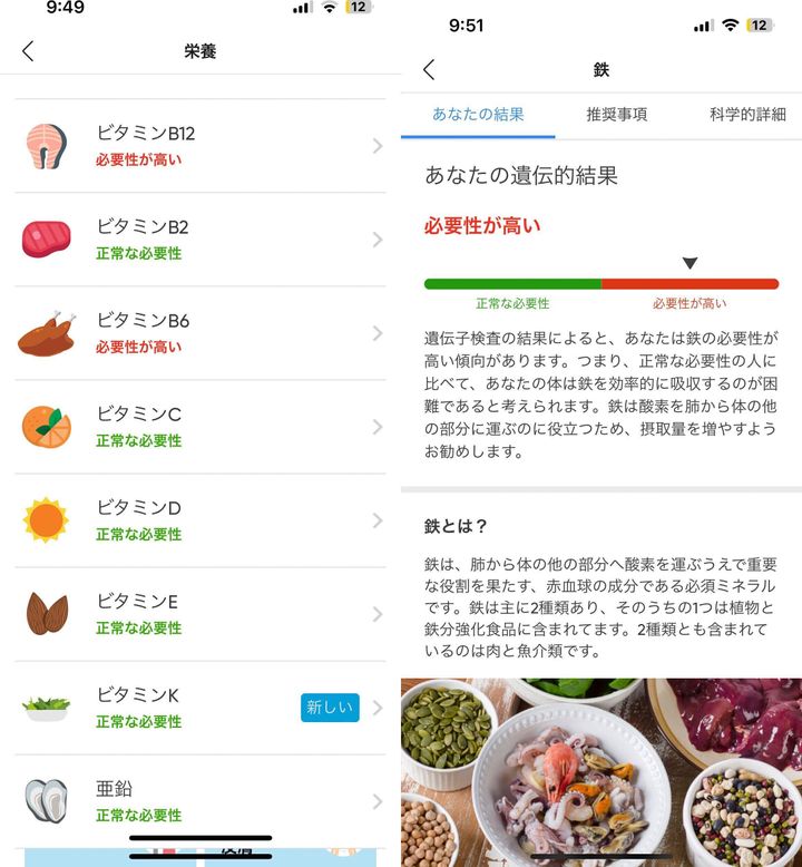 ※遺伝に関する研究はまだまだ発展途上。そのため、検査項目別に「信頼度スコア」といって現時点でどの程度の確証があるものなのか、根拠となる文献が何かといった情報が提示されていて、新しい研究結果が出た場合には解析結果が更新されることも。その点は念頭において役立ててくださいね。