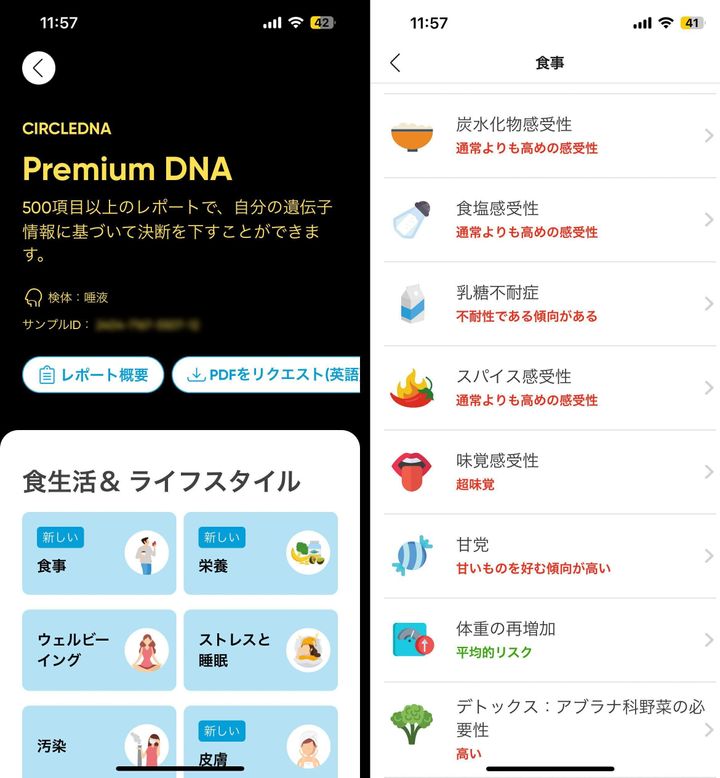 今回、「CircleDNA」を選んだ理由は、なんと言っても500項目以上という検査項目の多さ。遺伝的にどんな栄養素を多く必要とするか、どんな運動が向いているのかが分かるという点で、限られた時間の中でも効果的な食事や運動をしたい!という私の想いにマッチして選びました。