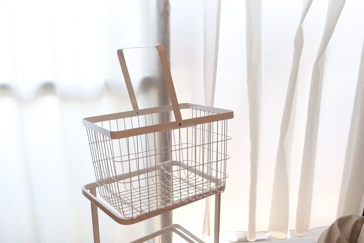 それが「山崎実業」のtowerランドリーワゴン+バスケットです。色は、黒と白の二色。上段のバスケットは容量23LのМサイズ、下段のバスケットは容量33LのLサイズ。普段着、おしゃれ着用と分けることができるのが嬉しいポイント。