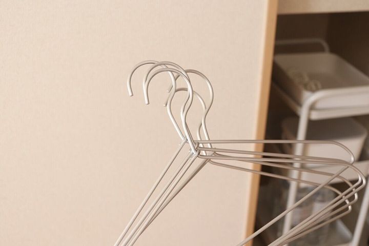 洗濯物を干すハンガー、クローゼットの中に吊るすハンガー。みなさんはどうされていますか?洗濯後に別のハンガーに移動させるのって、いちいち面倒ではありませんか?私はやりたくない。だから、無印良品のアルミハンガーにすべて統一しています。濡れているものにも対応していて、シンプルなつくりになっています。洗濯物が乾けば、そのままクローゼットに吊るすだけ。なんてラクなのでしょうか。