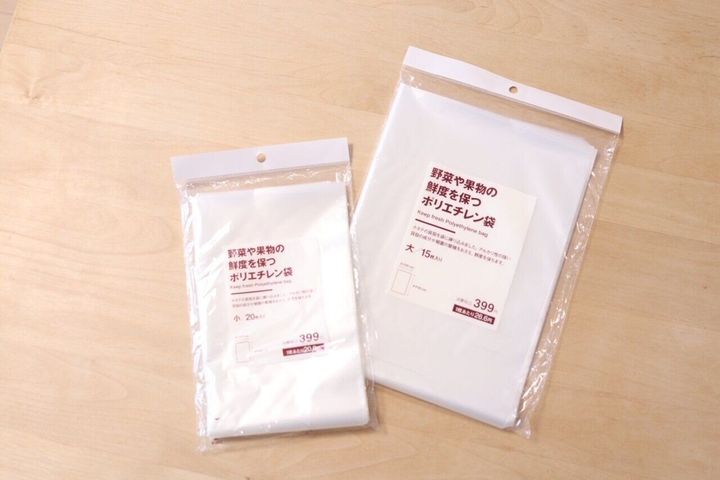 大、小の2種類があります。価格はどちらも399円(消費税込み)大は15枚、小は20枚入り。この商品は、野菜や果物を長くおいしく保ってくれるのが良いところ。「特売日で沢山の野菜や果物を買いすぎちゃった…」そんな経験ありませんか?私も同じ経験があり、いくつかの野菜をダメにしていまったことがありました。ですが、こちらの袋に野菜を入れると、あきらかに野菜がシナシナにならず、長い間鮮度をキープ!ぜひ一度試してほしい商品です。