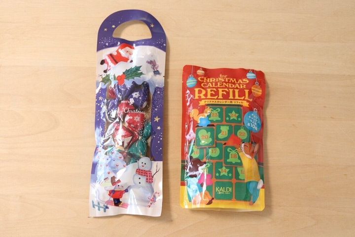 選んだものは2種類。左「メリーチョコレート クリスマスチョコレート(¥378(税込)」右「カルディ クリスマスカレンダー用リフィル(¥348(税込)」