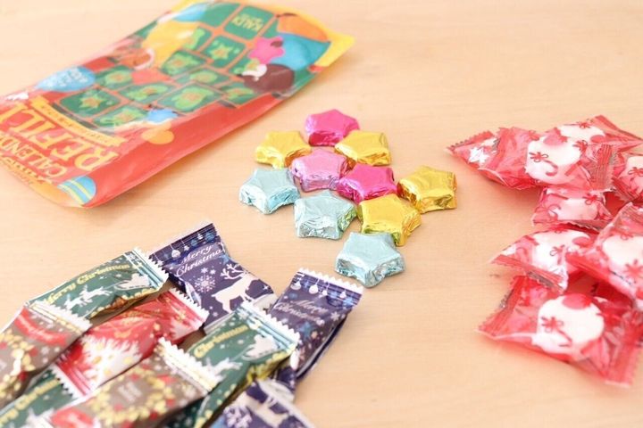 赤の包み袋に入ったラムネ、星の形のカラフルなチョコレート、クリスマスの絵柄がかわいいキャンディ。なんとこちら、全部で30個入っております。カルディさんすごい!この物価上昇時代に¥348(税込)とコスパが良いので、中身に悩まれている方にはぜひともおすすめしたい商品です。ただ、人気商品のため早く売り切れる可能性が高いので、気になった方は足を運んでみてくださいね。