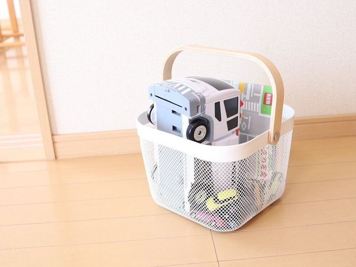 子どものおもちゃ箱を観察していると、おままごとのおもちゃの中にブロックやスーパーボール、車のおもちゃなど、多数の種類が混在していませんか?それでは、片づきません。まずは同じもの同士を分けて、グループにし、まとめるとおもちゃ箱はごちゃごちゃしません。