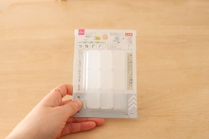 ダイソー「つなぐ!ネームプレート付連結パーツ」、すき間なくピタッと連結固定できる商品です。