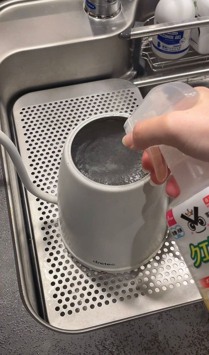 1:ケトルに水を満杯にしてから、クエン酸を20プッシュ
