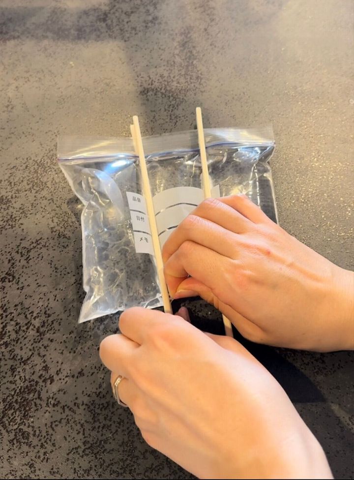 2:ジップロックをロックして、割りばしで挟んで仕切りを作る