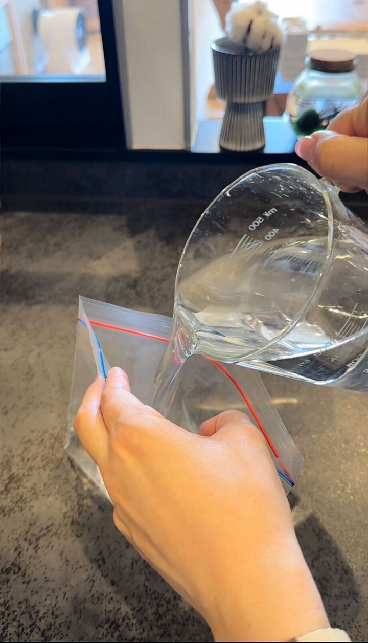 1:まずジップロックにお水を入れます