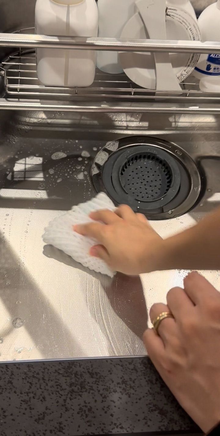 柔らかいので、シンクをキズつけずにキレイにすることができますよ。