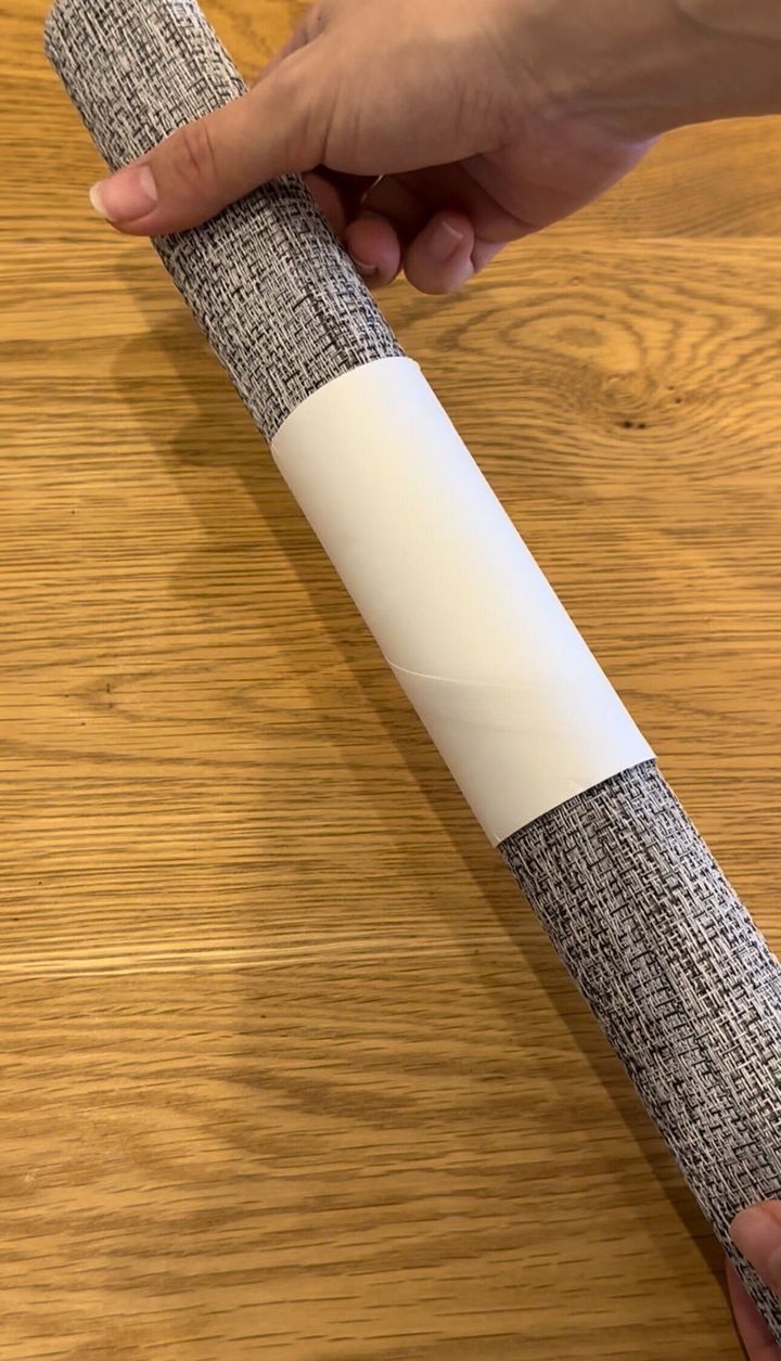 ランチョンマットをくるくると巻いて、そこにトイレットペーパーの芯を通すだけでオッケー!