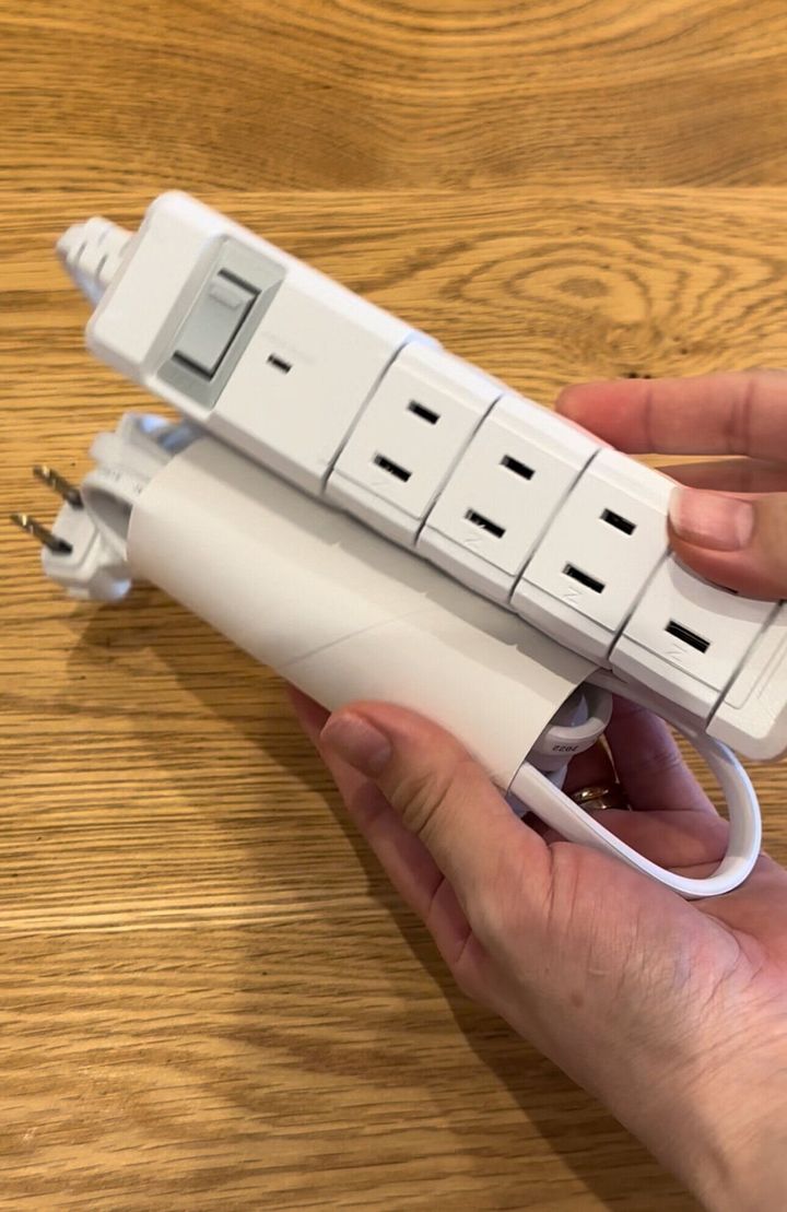 コードをまとめて、芯の中にはめるだけとお手軽にできる収納術です。