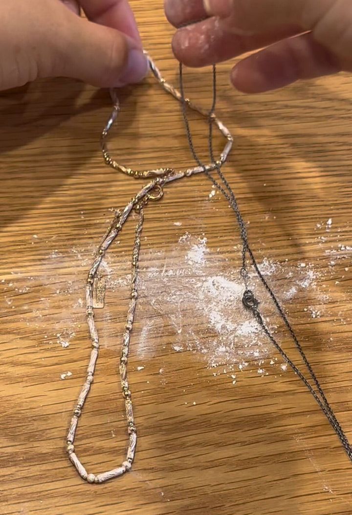 パウダーのおかげで絡まりがほどけ、アクセサリーの絡まりが解消されます。