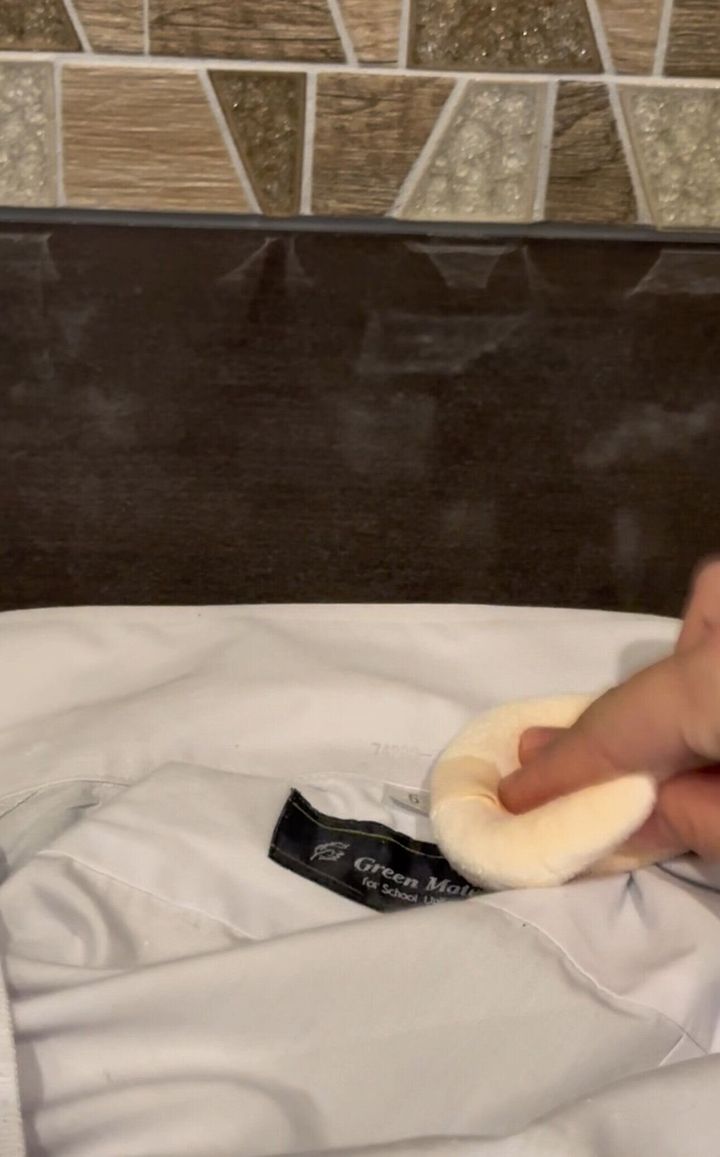 白シャツの襟元など、汚れやすいところに事前にベビーパウダーをポンポンとしておきましょう。