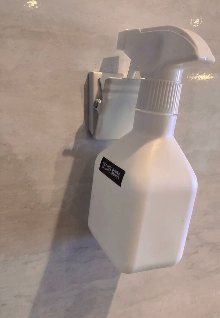 マグネットクリップにスプレーボトルを引っ掛ければ浮かせる収納に早変わり♪