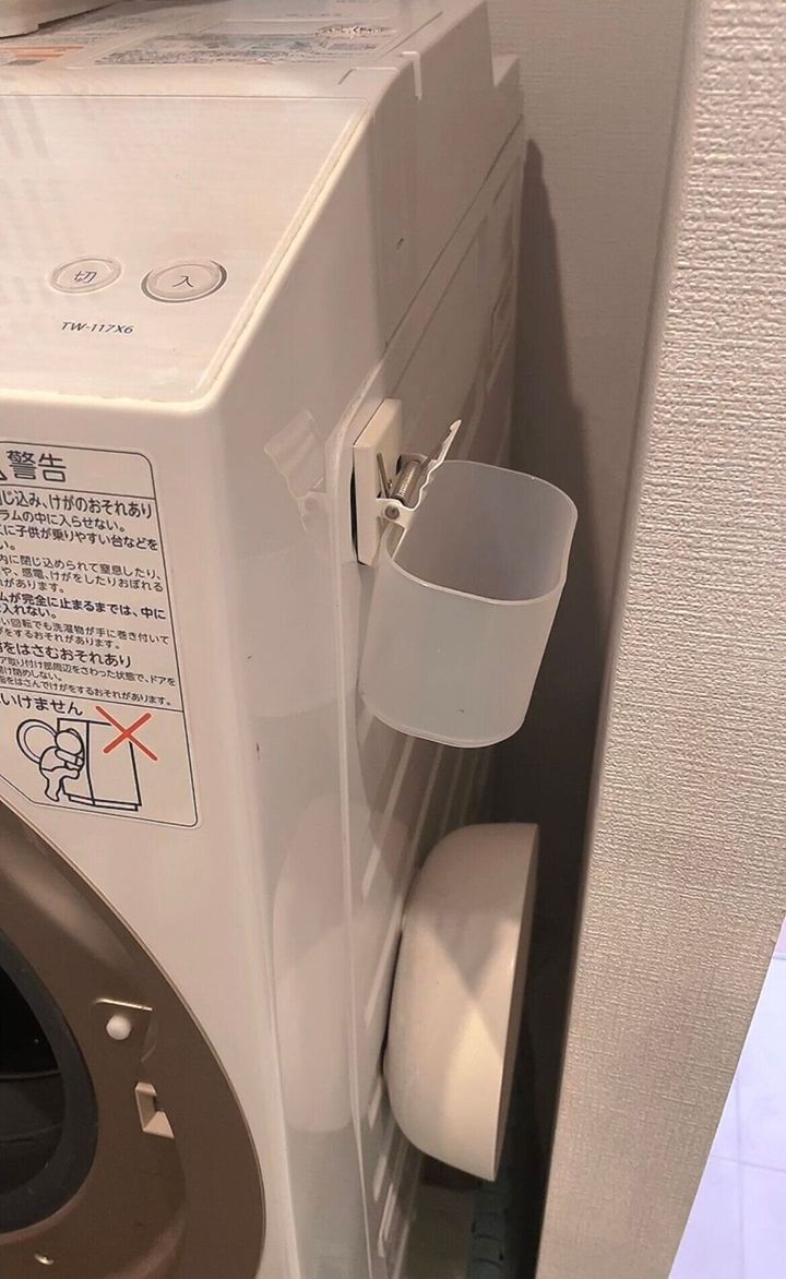我が家では、洗濯機の横に取り付け、洗濯ばさみなどの小物を入れています。