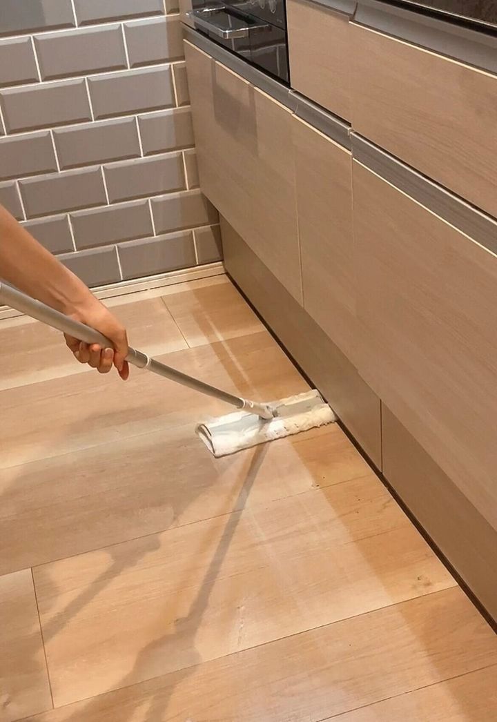 我が家では、床に直接スプレーしてから、乾いたクイックルワイパーで拭き掃除しています。